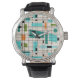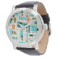 Dit Retro Grid en Starbursts Mannen Watch is waar stijl samenkomt met de huidige tijd. Het heeft een crèmekleurige achtergrond met kitscherige, off-kilter vierkanten en rechthoeken in blauwgroen, turquoise, dit lichtblauw, sinaasappel en avocado groen. De grillige blokken van kleur zijn overlayed worden bewerkt in enkele van de rastersnijpunten. Er zijn ook zwarte rechthoeken met zwarte verticale en horizontale lijnen die een rasterpatroon vormen. Zwarte sterrensprongen design en vierkanten die sporadisch geplaatst werden in dit moderne tapijt van kleur. Pak je go-go laarzen en bell-bottoms en geniet van deze teruggooi naar de jaren 60.
