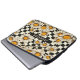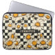 Retro Groovy Daisy Checkerboard Personalized Name Laptop Sleeve beschikt over een groovy daisy patroon op een zwart-wit dambordpatroon achtergrond met uw aangepaste tekst of gepersonaliseerde naam in het midden. Perfect als cadeau voor familie en vrienden voor Kerstmis, verjaardag, feestdagen, Moederdag, collega's en meer. Creëer door ©Evco Studio www.zazzle.com/store/evcostudio