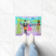 Mele Kalikimaka! Deze Retro Hawaiian Kerstdeur Mat is voorzien van een minimalistische cartoon tekening van een aantrekkelijk stel dat de vakantiereis van een leven lang maakt! De moderne middeleeuwse scène is op een tropisch vliegveld geplaatst. De heer en mevrouw Tourist leggen zich voor de vloer voor aan glazen plafondmuren. Ze willen immers elk moment van hun vakantie naar het paradijs documenteren. De heer Tourist is gekleed in een zwart pak, lichtblauw shirt, rood stropdas en zwarte fedora. Hij heeft een oranje koffer. Zijn arm is om zijn mooie bruid. Ze draagt een warme roze jurk. Een heldere blauwe handtas wordt over één arm gesleept. Een kersthoed grijpt haar blonde hoofd. Het zou niet doen om door de lucht te reizen en niet om je beste te zien! Beide dragen een kleurrijke bloem rond hun nek. Naast hen zien we een verbluffend, gouden geschilderd schoudermeisje met stromend zwart haar. Miss Hula draagt een traditionele grasrok. Haar doppen heeft echter een feestelijke draai. Haar bikini top is rood met witte sierstrip. Eet je hart, Mrs Claus. In plaats van een bloem draagt ze een vleugje heilig in haar haar haar. Op één arm staat een extra Hawaiiaanse lei klaar om de volgende persoon aan te bieden om uit het vliegtuig te stappen. Ach, kan je de orchideeën nu niet ruiken? Aan de andere kant van het stel is er een kerstboom die een eilandmakeover heeft gekregen. De gelukkige cedar is gedecimeerd met pastelseizoenen en zeester. Aan de andere kant van het glas zien we de luxe, jumbojetliner die het stel naar hun vakantiebestemming bracht. Op de tarmac is de stewardess van 1960 naar het gebouw op weg. Ze draagt een vormig, blauw uniform en een blauw pet van de springplank. Yowza. Die prachtige blonde kan me altijd koffie, thee of melk bieden! De hemel is een soort aqua die je wil bereiken voor de zonnebrandolie. We kunnen de groene silhouetten van palmbomen zien en het donkerblauwe silhouet van een vliegtuig dat onder de fluffy, lichtblauwe wolken vliegt. Oh, ik hoop dat die arme sukkels op dat vliegtuig niet op hun weg terug zijn naar de dagelijkse gang. Aloha!
