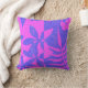 Deze retro Hawaïaanse bloemworp kussen heeft een bloem- en blad sjabloonontwerp in hete fuchsia roze en gestructureerd paars-blauw Japans washi, en is verkrijgbaar in twee vierkante maten en ook als een houten kussen. Voeg een beetje tropische flair toe aan elke ruimte. Aloha!