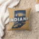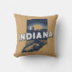 Stijlvol kussen met gooien is voorzien van retro stijl schilderachtig staat silhouet van Indiana op lichtbruine achtergrond.