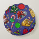 Retro Kerst Kleurrijk Blauw Rood Groen Rond Kussen