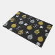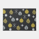 Een modern vormgegeven wintervakantieontwerp uit het midden van de eeuw met kerstversieringen en atoomtijdgeïnspireerde sterspringende sneeuwvlokken.