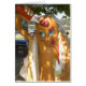 Retro Kitsch wenskaart van een hotdog standbeeld.