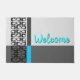 Mid Century Moderne vormen op een kleur geblokkeerde achtergrond in blauw en grijs