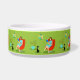 Deze Retro Reading Woman Ceramic Pet Bowl. is voorzien van een stijl uit 1960, minimalistische kunst, cartoon tekening van een vrouw die haar prioriteiten in orde heeft. Deze heerlijke boekenworm is ingebed in een echte pagina-turner. De vormig brunette draagt een aqua jurk en een rode bril, terwijl ze een blauw boek vasthoudt. Ze zit in een comfy, rode eierstoel. Voor haar staat een gestroomlijnde, zwarte kat in een blauwgroen kraag genoopt van de rust en de rust die voortkomt uit het leven met een bibliopfiel. Zowel de vrouw als de kat zitten in een stijlvolle groene kamer. Overhead, er is een kitschy werende lamp in tinten van geel en turquoise. Aan de zijkant is er een pluim, tropisch, pottenachtig plant in een waterblokpot. Kat, als je iets nodig hebt, moet je wachten tot ze dit hoofdstuk af heeft.