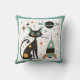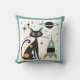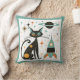 Retro MCM Black Cat Ruimteschip Planet Stars Kussen