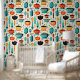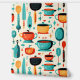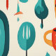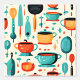 Een ai-illustratie van een collage retro keukenapparatuur met kleuren zoals blauwgroen, sinaasappel, tan en beige.