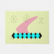 kijk doormat met een atoomouderontwerp met atomen, boemerang en harlequin-motieven op een citroenchiffon achtergrond.