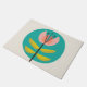 Het abstracte kunstontwerp van 1950 met een zalmroze bloem met groene chartreuse bladeren tegen een turkooiszon, gedaan in de moderne stijl van de midden eeuw.