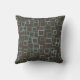 Een retro stijl aqua en bruin vierkant patroon siert dit stijlvolle kussen. Het ontwerp is van originele kunst.