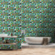 Retro Mod Ovals Kussen Blauwgroen Aqua Groen Bruin Behang