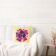Retro MOD Paarse Pansy Flower op Butter Yellow Kussen