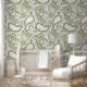 Retro Mod Paisley Olive Sage Green Beige Behang
