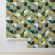 Retro Mod Squares Teal Blue Brown Mustard Yellow Behang