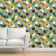 Bring a touch of retro flair to your interiors with this joyful wallpaper featuring a unique geometric design. The retro mood pattern combines calm and vivid colors that can transform any room into a stylish haven. Perfect for those looking to make a bold statement, this wallpaper is sure to impress your guests and enhance your decor. Explore the endless possibilities of revitalizing your environment and express your personality with this eye-catching design.