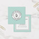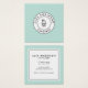 Een retro modern visitekaartje met een ronde zwart-witte logo op de voorkant op een zachte pastelblauwe achtergrond. De achtergrondkleur kan worden gewijzigd in alles dat overeenkomt met uw bedrijf. Dit zou perfect zijn voor iedereen die cupcakes bakt, een taartenwinkel of een bruidstaart bakkerij heeft.