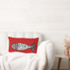 Mid-Century Modern, wit, retro-vispatroon lumbale kussen, in schaduwen van lichtzilver grijs / grijs tot diep grafiet grijs op een diepe lipstick rode achtergrond