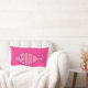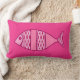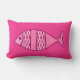 Mid-Century Modern, wit, retro vispatroon lumbar kussen, in pastel- tot middelgrote roze en fuchsia, op een gemiddelde roze achtergrond van fuchsia