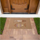 Doormat in een middeleeuwse moderne, witte, retro-vispatroon, in tinten, roest, beige, bruin en wit, op een lichtcacaobruine achtergrond