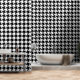 Versier uw kamer met dit wandpapier met een klassiek hounds-tooth weefpatroon. Het weefpatroon van honden-tanden is een van de meest modieuze patronen van de moderne tijd. Het ziet er absoluut fantastisch uit op elk product. In standaard zwart-wit. Hoewel het een oud mozaïekpatroon is, is het vandaag de dag weer erg populair bij modieuze jonge vrouwen. Honden-tandcontroles zijn oorspronkelijk afkomstig uit geweven wollen stof van de Schotse laaglanden, maar worden nu gebruikt in vele andere materialen. Eerst werd het modieus in de jaren dertig van de vorige eeuw.
