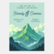 Nodig uw gasten uit voor een avontuur met deze prachtige en unieke save the date-kaart. Het ontwerp is voorzien van een adembenemende, retro-stijl afbeelding van een majestueuze bergketen, met een zonovergoten piek die boven schilderachtig valleien uitsteekt. De levendige, schilderachtige kunststijl en het rijke kleurenpalet van greens, teals en blues roepen een gevoel van grandeur en het buitenleven op. Een gedurfd, -geïnspireerd script lettertype benadrukt de namen van het paar, perfect als aanvulling op de avontuurlijke geest van de kaart. Dit is de ideale keuze voor koppels die een bruiloft met een berg-, bos- of buitenthema plannen op een locatie zoals Denver, Colorado of ergens anders met een prachtige achtergrond.
