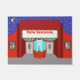 De sterren staan op volle kracht op deze Retro Movie Theatre door Mat - zowel de sterren in de nachtelijke hemel als de sterren op het zilveren scherm. Deze stijl van 1960, minimalistisch kunstontwerp kenmerkt de buitenkant van een klassiek filmhuis uit de Gouden Eeuw van de film. Het rode gebouw heeft een briljant verlichte markttent, die zegt: "NU TOONT" in rode letters. Onder de markttent is een theatermedewerker klaar voor een menigte films die filmboeien maken, die zeker in een druppel opklapt. Het silhouet van de schone snede, de theaterarbeider is enkel zichtbaar door het waterglas van de kaartenhoes van de doos kantoor. Geen pit popcorn kan gevonden worden op de spotloze grijze stoep. Grijze dubbele deuren slaan de kaartenhokje in. De voorzijde van het gebouw toont zwarte en witte posters die door dramatisch verlichte lijsten worden omringd. Eén poster shows ster kruiste de liefhebbers in een dramatische scène en de andere shows een zwempak met een sterretje waarvan de carrière even helder is als de zon die ze aanbidt. Dit product komt van de briljante geesten van Zazzle's StrangeLittleOnion, die je zo'n sekte-klassiekers hebben gebracht als Retro Pool Party, Film Noir Martini en Retro Space Age Cartoon Couple. Critici zijn het daarmee eens; als u slechts één ontwerp dit seizoen kunt kopen, maak het dit (of om het even welke andere spectaculaire design StrangeLittleOnion)!