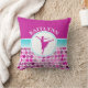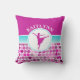 "Retro" ontwerpdanser gooit een kussen met een "ver uit" paarse heupcirkels achtergrond. Een beetje blauwgroen geeft dit een gierig vibe. Voeg je eigen naam toe voordat je bestelt. Bovendien, gebruik de "pas het"knoop voor meer opties aan, met inbegrip van een verschillende doopvont! ©gollymeiden.com
