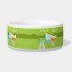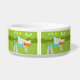 Dit Retro Palm Springs House met Car Ceramic Dog Bowl is een moderne droom van een moderne geliefde uit de midden eeuw. Het minimalistische kunstontwerp is voorzien van een gestroomlijnd oranje en glazen huis met een dramatisch slopend vinkvormdak. De rode deur compenseert de oranje steenplanter gevuld met groen en de decoratieve turkooise-poester-block privacy-scherm. De gestagelde betonblokken vormen de perfecte weg door het zachte, groene gras. Een witte haven biedt beschutting aan een turquoise en een witte klassieke auto van 1950 met vinnen. De auto is perfect om rond de groene, afgeronde bergen op afstand te rijden. De kitschy 1960's stijlhuis ziet eruit als een gladde oase van de warme, Palm Springs sun.