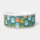 Retro Paw Prints Blauwgroen Groen Pet Voerbakje