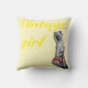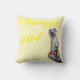 Retro Pinup Glamour Girl Cushion met originele pinup artwork ©"Miss Cherrie Au Lait – Bath". Met de tekst " meisje". Retro Geel en Oranje kleuren.