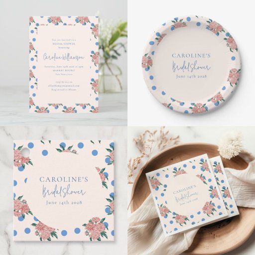 Blue Polka Dot Floral Bridal Shower DecorationsOntworpen door Opal Ellery