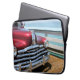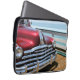 Deze retrorode auto op het strand zal uw laptop veilig vasthouden.