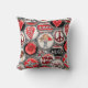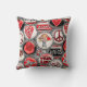 Een assortiment van schattige retro geïnspireerde petten afbeeldingen bedekt dit kussen, met valentijn boy, vredesteken, bloemenharten, bloemen en woorden zoals True Love, Kisses en Love. Perfect voor de Valentijnsdag!