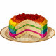 Perfect voor een verjaardagsfeest of feestdag, een kitchy, retro afbeelding van een cake gekleurd met regenboogvorst.
