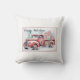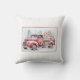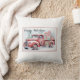Waterverf retro rode truck met kerstsnoepjes en sneeuwvlokken in winterbos. Tekst kan worden gewijzigd of verwijderd.