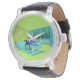 Dit Retro Romantische Gay Couple eWatch ontwerp is gewoon geweldig! De jaren 60 stijl, minimalistische kunst ontwerp beschikt over een aantrekkelijk stel genieten van een romantische avond. Ze zijn opgeknuffeld op hun mooie, moderne turquoise secties, in hun Palm Springs huis. De verfijnde, kalkgroene kamer heeft een schuine groene stenen muur, waarop kitschy, kiezelkunst hangt. Een leuke oranje lamp met een glasvezelkap van twee lagen siert een bijzettafel. De goed geklede mannen houden martini's vast. Door de glazen schuifdeuren licht een volle maan de nacht op, waardoor bergen, palmbomen en een zwembad zichtbaar worden. Proost op de perfecte avond!