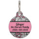 Retro Roze en White Fern voor huisdieren Huisdierpenning