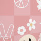 Een retro roze geruit hippie patroon met schattige illustraties van bloemen, vredesborden en meer. Een ideaal ontwerp voor iedereen die van roze groovy illustraties houdt. Perfect voor kinderen slaapkamer inrichting en kinderen verjaardagsfeestjes.
