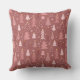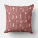 Retro Roze Kerstbomen Sneeuwvlokken Sterren Harten Kussen