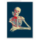 Blij glimlachend skelet met zijn benige hand rustend op zijn kin, uitgevoerd in retro kleuren.