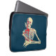 Blij lachend skelet met zijn benige hand rustend op zijn kin, uitgevoerd in retrokleuren.