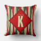 Knusse Sierkussennen met een koel Retro 1950-motief in traditionele kerstkleuren van rood, groen en gebroken wit, bedekt met een coördinerend rood diamantvormig medaillon dat is afgedekt met het Monogram van uw keuze in een romig, met sneeuw bedekt lettertype. Bekijk meer producten w / dit ontwerp voor een gecoördineerde kerst ingericht huis!