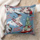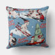 Retro Sneeuwmannen Wintersport op Blauw Kussen