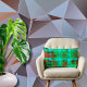 Doordrenk uw leefruimte met een moderne flair geïnspireerd op de abstracte schoonheid van een stadsgezicht in levendige groene en oranje tinten. Verhoog uw interieur met dit lumbale kussen met een strakke, geometrische achtergrond die eigentijdse elegantie uitstraalt.