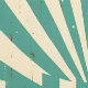 Dit kunstwerk heeft een opvallend retro-geïnspireerd ontwerp met gedurfde, stralende strepen in een blauwgroen en crèmekleurig palet. Het centrale starburstpatroon wordt geaccentueerd door hoekige lijnen en geometrische vormen, waardoor een gevoel van beweging en energie wordt gecreëerd. De versleten, gestresste textuur voegt een gevoel toe, dat doet denken aan oude posters of bewegwijzering. Kleine sterretjes en stippen verspreid over het ontwerp versterken de nostalgische en dynamische esthetiek, waardoor het een visueel aantrekkelijk stuk is.