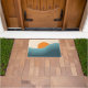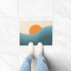 Abstracte kleurrijke retro stijl zeegezicht illustratie met blauw zee golven en zon decoratie bij zonsondergang voor iedereen die houdt van natuur en wachten op zomeravonturen.