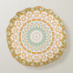 Retro Sunrise Mandala in Sinaasappel, groen en bru Rond Kussen