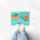 Elke dag kan een dag op het strand zijn met deze Retro Surfer Dude Door Mat. Het minimalistische kunstontwerp uit de jaren 60 heeft een blonde surfer die door de zon gekust is en klaar staat om een golf op te vangen. Onze fitte surfer kijkt uit op de oceaan door de glazen schuifdeuren van zijn huis aan het strand. Hij staat in zijn aquakleurige woonkamer. We zien een aqua en turkoois, stenen muur en een middeleeuwse, oranje stoel. Aan de andere kant van de glazen deur zien we een patio. Verder is er een gouden zandstrand, zwaaiende palmboom, sprankelende pauw, blauwe oceaan en een aqua sky. In de verte kunnen we een blauwgroen vulkanisch eiland zien, dat voorlopig sluimert. Surfer Dude houdt een blauwe surfplank en draagt blauwe, tiki-gepatrooneerde boardshorts. Vang wat golven en deel wat liefde met dit kitschy zomerontwerp!