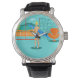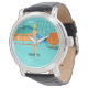 Elke dag kan een dag op het strand zijn met deze Retro Surfer Dude Mannen. Het minimalistische kunstontwerp uit de jaren 60 heeft een blonde surfer die door de zon gekust is en klaar staat om een golf op te vangen. Onze fitte surfer kijkt uit op de oceaan door de glazen schuifdeuren van zijn huis aan het strand. Hij staat in zijn aquakleurige woonkamer. We zien een aqua en turkoois, stenen muur en een middeleeuwse, oranje stoel. Aan de andere kant van de glazen deur zien we een patio. Verder is er een gouden zandstrand, zwaaiende palmboom, sprankelende pauw, blauwe oceaan en een aqua sky. In de verte kunnen we een blauwgroen vulkanisch eiland zien, dat voorlopig sluimert. Surfer Dude houdt een blauwe surfplank en draagt blauwe, tiki-gepatrooneerde boardshorts. Vang wat golven en deel wat liefde met dit kitschy zomerontwerp!
